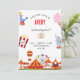 Venez célébrer le jour spécial de votre enfant avec cette invitation d'anniversaire sur le thème du cirque. Avec des chapiteaux, des ballons et des détails festifs, ce design est parfait pour une fête de cirque amusante. Personnalisez facilement avec les détails de votre fête et créez des souvenirs inoubliables.