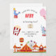 Venez voir! 🎉 Célébrez la journée spéciale de votre enfant avec cette invitation d'anniversaire sur le thème du cirque mignon. Avec des tentes ludiques, des ballons et des détails de fête, ce design est parfait pour une fête sur le thème de la fête foraine remplie de plaisir. Personnalisez facilement avec les détails de votre fête et créez des souvenirs inoubliables.
