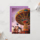 Image d'un manège à balançoires dans un parc d'attractions sur le devant. Détails de la fête au dos.