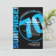 Cette invitation à l'anniversaire brillante et amusante fera connaître à vos invités la partie la plus importante, c'est une surprise! Bleu clair sur noir avec un 70 géant avec votre libellé personnalisé pour un invitation d'anniversaire surprenant gagnant. Le dos leur rappelle de briller !