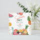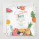 Cette invitation d'anniversaire d'été ludique présente des illustrations de pastèque fraîche, d'ananas et de fruits tropicaux pour une célébration vibrante et joyeuse. Parfait pour les anniversaires d'été, les fêtes en plein air et les rassemblements sur le thème tropical. Œuvre originale de Caroline Bonne Müller