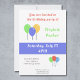 Une invitation colorée pour une fête d'anniversaire avec ballons et pois : elle sera particulièrement appréciée des enfants. Changez le message et utilisez-le pour une fête de ménage, un baby shower, une casserole de retraite ou toute autre fête que vous organisez!