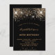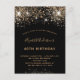 Une invitation moderne, élégante et glamour pour une fête d'anniversaire de 40 ans (ou tout autre âge). Un fond noir orné de paillettes et de scintillements factices. Le nom est écrit avec un style de lettrage à la main doré moderne. Personnalisez et ajoutez les détails de votre fête.
