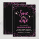 Cartes d'invitation pour les 64 ans Pink noir enregistrer la date Glam chic paillettes scintillent