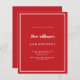Une invitation moderne, élégante et raffinée. Arrière - plan rouge décoré d'un cadre blanc. Personnalisez et ajoutez un nom et des détails. Texte blanc. 1 feuille = 1 invite imprimé bord à bord.
