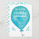 Allez, c'est la fête d'anniversaire pour votre petit garçon ! Cette adorable invitation d'anniversaire comporte un ballon bleu aqua et une typographie manuscrite qui est moderne et tendance. Le dos est doté d'un motif usé d'aquarelle. Tous les détails sauf la rubrique "Pop on over pour une fête d'anniversaire" sont personnalisables.