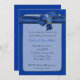 Invitation d'anniversaire de mariage élégante réalisée en bleu. Une zone de texte semi-transparente en couches est bordée d'une jante dorée, avec des graphiques d'un beau ruban de satin bleu en haut, avec un bijou de saphir bleu serti d'or. Personnalisez tout le texte pour répondre aux besoins de votre fête. Une invitation d'apparence très élégante et formelle.