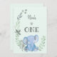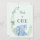 Blue Elephant avec Floral Design First Birthday Invitation avec personnalisable couleur et texte arrière - plan.