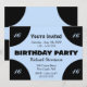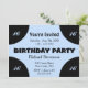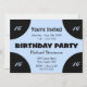 Centre bleu clair sur l'invitation de fête d'anniversaire noir. Le bleu et le noir donnent un aspect moderne à l'ensemble. Ajouter l'âge ou laisser vide - Compléter avec RSVP
