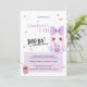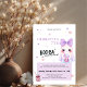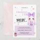 Si vous buvez, célébrez et devenez effrayant avec cette adorable invitation d'anniversaire BOO-BA. Avec un personnage de fantôme de boba pastel entouré de cœurs et d'étoiles ludiques, ce design est parfait pour les enfants qui aiment le bubble tea et l'Halloween. Personnalisez instantanément avec vos informations pour une invitation unique que vos invités adoreront.