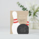 Une invitation d'anniversaire moderne et neutre en termes de genre avec boule de bowling et 2 quilles. Invitez vos amis à célébrer et à jouer une partie amusante de bowling pour célébrer l'anniversaire de votre enfant. Le dos à motif coordonné peut être retiré pour faire place à des informations supplémentaires sur la fête comme les directions.