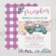 Invitation d'anniversaire Fille de fermier aquarelle camion vintage violet et sarcelle, fleurs d'automne patch de citrouille.