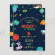L'INVITATION D'ANNIVERSAIRE CÉLÉBRATION SPACE-TACULAR est une invitation sur le thème de l'espace pour l'anniversaire de votre petit ! Cette conception présente un vaisseau spatial coloré, des planètes, une soucoupe volante et quelques étoiles. Cliquez sur "Personnaliser" pour modifier le texte pour une célébration d'anniversaire hors de ce monde.