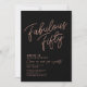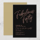 Invitation d'anniversaire 50 ans personnalisée noire et or rose "Fabulous Fifty" avec une typographie classe et moderne. Personnalisez-la facilement avec le nom, l'âge et les détails de la fête.