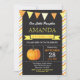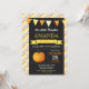 Invitation d'anniversaire citrouille. Petit Citrouille Invitation d'anniversaire d'automne. 1er premier anniversaire. Bandes orange et jaune, arrière - plan en tableau noir. Pour plus de personnalisation, cliquez sur le bouton "Customiser" et utilisez notre outil de conception pour modifier ce modèle.