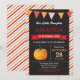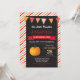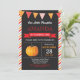 Invitation d'anniversaire Citrouille. Invitation d'anniversaire automnale Petite Citrouille. 1er Premier anniversaire. Bandes orange et rouges, fond tableau noir. Pour une personnalisation plus poussée, veuillez cliquer sur le bouton "Personnaliser" et utiliser notre outil de conception pour modifier ce modèle.