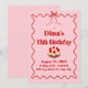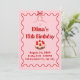 Cette invitation d'anniversaire rose et rouge mignonne met en avant un cupcake surmonté d'une fraise, une bordure rouge ondulée, un nœud rose et une étoile sur un fond rose doux