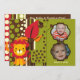 Vous pouvez facilement ajouter deux photos de votre enfant à notre invitation d'anniversaire d'animaux de zoo avant la commande. Facile à customiser avec toute votre information de fête d'anniversaire, nos invitations d'anniversaire d'animaux de zoo sont colorés, mignons, et uniques ! Comporte un lion, une girafe, et un éléphant !