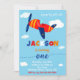 Invitation d'anniversaire d'avion Invitation d'avion Vintage pour les garçons et les filles Vers et hors invitation de fête Heure de vol invitation. Invitation d'anniversaire à thème de transport pour le premier anniversaire d'un garçon en bas âge avec l'avion et quelques nuages dans le ciel bleu autour. Cette carte d'invitation simple et moderne, neutre pour les hommes, est parfaite pour le 1er anniversaire ! Modifiez simplement ce modèle pour faire votre propre invitation !