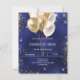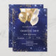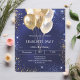 Une invitation moderne, élégante et glamour pour une fête d'anniversaire du 18ème (ou tout âge). Un arrière - plan bleu marine, décoré de parties scintillant bleu et faux or brille et de ballons d'or. La couleur bleue est inégale. Personnalisez et ajoutez votre nom et les détails de votre fête. 1 feuille = 1 invite imprimé bord à bord.