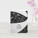 Cette invitation de carte d'anniversaire de basketball mignonne présente l'image réaliste d'un basketball stylisé abstraitement surdimensionné qui a des panneaux alternés noirs et blancs recolorés sur le devant de la carte - un motif doodle de paisleys, de fleurs et de plumes en blanc couvre les panneaux noirs du basketball - personnalisez avec votre propre message d'anniversaire - par katz_d_zynes