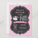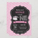 Invitation d'anniversaire de Bowling 1er anniversaire. Invitation de Fête d'anniversaire. Bowling Sport Theme Birthday Bash. Arrière - plan Chevron Chalkboard rose et blanc. 1er anniversaire. Numérique imprimable.