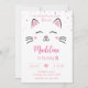 Kitten Birthday Invitation Modèle est parfait pour la fête d'anniversaire de fille. L'invitation à thème Cute Kitty Cat est plein d'éléments de design amusants et mignons comme le visage de chaton, des whiskers, patte de chat, et plus encore. Les Anniversaires de enfants sont spéciaux et cet invitation peut l'aider à faire un anniversaire mémorable
