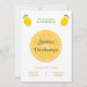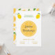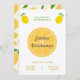 Une invitation d'anniversaire avec deux illustrations de citron jaune, une tranche de citron sur l'arrière - plan et des textes personnalisables ! Le dos est livré avec une tranche, la moitié et le motif au citron plein. Vous pouvez personnaliser les textes et l'utiliser pour une fête de ménage, un mariage, une retraite, une fête de bachelorette, etc.