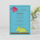 Commencez votre fête du bon pied avec notre invitation d'anniversaire de dinosaure amusante avec deux dinosaures verts et rouges sur un fond bleu. Parfait pour un premier anniversaire ou un anniversaire de tout âge. Entièrement personnalisable par vous avec vos informations. ©Kelly Medina