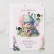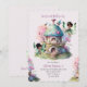 Invitation de fête d'anniversaire de jardin de fées avec des fleurs sauvages et une forêt enchantée. Fée afro avec un thème fantaisiste. Modèle d'invitation éditable.