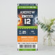 Invitation d'anniversaire de football avec billet personnel pour garçons ! Conçue pour ressembler à un véritable billet de match de football, cette invitation est parfaite pour le grand jour de votre petit footballeur. Avec des graphismes audacieux sur le thème du football, elle capture l'excitation du jeu et donne le ton pour une célébration d'anniversaire amusante et pleine d'action. Personnalisez-la avec les détails de votre événement pour créer une invitation unique et mémorable que vos invités adoreront en se préparant à célébrer votre jeune athlète !
