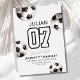 Lancez la célébration avec cette invitation d'anniversaire sur le thème du football, audacieuse et moderne ! Avec un design minimaliste comportant des ballons de football noir et blanc et un numéro de maillot de sport mis en avant, cette invitation est parfaite pour l'anniversaire de votre jeune star du football. Entièrement modifiable pour personnaliser avec leur nom, âge et détails de la fête. Idéal pour les matchs de football de jardin, les fêtes sportives en intérieur ou les célébrations d'équipe.