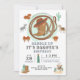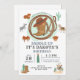 Une invitation d'anniversaire "saddle up" mignonne et fantaisiste de style cowboy Wild West pour un garçon, dans des tons de brun terracotta et de bleu, avec des éléments de décoration western, du matériel de cowboy et des animaux de ranch. Selle, bœuf, chevaux, cactus, selle et lasso. Tout ce dont un cowboy a besoin. C'est son premier rodéo ! Vous pouvez personnaliser ceci pour n'importe quel âge, il suffit d'ajouter le nombre devant le mot anniversaire.
