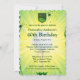 Invitation d'anniversaire de golf avec une boule sur le tee et l'herbe, sur un arrière - plan sunburst. Il affiche également un vert avec un drapeau rouge, vous pouvez changer à tout âge que vous voulez. do-it-yourself