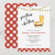 Invitation amusante de fête de barbecue en famille avec illustration aquarelle de burger et de bière avec carreaux rouge et blanc gingham. Parfait pour les événements en plein air comme le pique-nique en famille, les réunions, l'anniversaire, la fête de retraite, la baby shower.