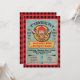 Parfait pour le mec viril ! Invitation de fête de bûcheron avec un grand bûcheron barbu, des haches, du bois coupé sur un fond de flanelle. Parfait pour un anniversaire, une retraite, un enterrement de vie de garçon, un événement important ou n'importe quelle fête virile. Illustration dessinée à la main par McBooboo. Veuillez me contacter à tkatz@me.com pour tout problème