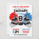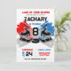 Célébrez la journée spéciale de votre petite étoile avec cette excitante invitation d’anniversaire sur le thème du hockey! Avec son bleu cool, ses tons rouges, ses bâtons de hockey, ses rondelles et son ambiance d'arène, cette invitation donne le ton parfait pour une journée pleine de plaisir et d'excitation. Personnalisez avec vos détails de fête et préparez-vous à marquer gros sur les souvenirs! Parfait pour les enfants et les adultes qui aiment le jeu.