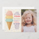 Organisez la fête d'anniversaire la plus cool avec cette invitation à l'anniversaire Editable Ice Cream! Cette charmante carte de 5 x 7 pouces présente des cônes de crème glacée pastel, des arrosages et des accents d'aquarelle douce, parfaits pour une fête estivale amusante. Personnalisez-vous instantanément en utilisant l’éditeur en ligne de Zazzle - ajoutez le nom, l’âge, la date de la fête, l’emplacement et les détails RSVP en quelques clics. Idéal pour les tout-petits, les enfants et les adolescents qui aiment une ambiance douce et ensoleillée. Idéal pour les fêtes de jardin, les amusement au bord de la piscine et les salons de crème glacée !