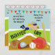 Battre ! Ces invitations d'anniversaire colorées à thème de baseball customisé sont parfaites pour les filles qui aiment le baseball ou qui ont un thème de baseball fête d'anniversaire! Drapeaux, terrain de baseball, gant de baseball, baseball, casque, gant de baseball et une fille aux cheveux blonds portant un casquette de baseball bleu et gris et uniforme! Facile à customiser avec les détails de la fête d'anniversaire de votre enfant!