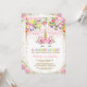 Invitation à l'anniversaire de l'Unicorne avec une jolie illustration d'un visage de licorne, de fleurs d'aquarelle et de saupoudrées de stars du confetti rose et or