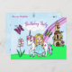 Un joli dessin animé de style art folklorique d'une princesse blonde dessinée à la main et d'une licorne avec un château, des fleurs et un papillon en arrière-plan. Un moyen idéal mais abordable de distribuer de nombreuses invitations d'anniversaire sur le thème des contes de fées.
