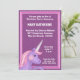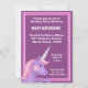 Invitations Unicorn Anniversaire avec rose et violet. Customisez facilement avec les détails de votre fête.
