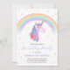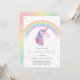 Tout le texte est modifiable sur cette invitation à thème Unicorn. Caractéristiques de l'aquarelle, arc-en-ciel, licorne, détail de parties scintillant or, et ciel bleu. Parfait pour toute célébration de thème Unicorne.