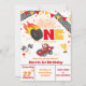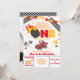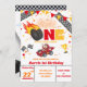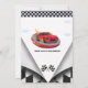 L'invitation à l'anniversaire de la voiture de course comporte une roue chaude brûlant feu, trophée et drapeau de dames, et une voiture de sport aux couleurs vives