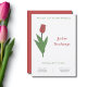 Une invitation simple et élégante à l'anniversaire avec une illustration de fleur de tulipe rouge botanique aux couleurs pastel ! Vous pouvez customiser des textes (en rouge, vert et gris) et l'utiliser pour une soirée de ménage, un mariage, une retraite, une soirée bachelorette, etc. La tulipe est la fleur de naissance d'avril, la fleur d'Aries et est une signification symbolique de l'amour parfait et profond.