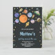 Faites l’anniversaire de votre enfant hors du monde avec cette invitation vibrante à l’espace ! Doté d'un navire-fusée, de planètes colorées et d'un arrière - plan de galaxie, ce design modifiable est parfait pour les jeunes astronautes et les amateurs d'espace. Personnalisez facilement les détails de votre événement en utilisant les outils de personnalisation de Zazzle. Idéal pour les garçons ou les filles qui aiment les étoiles, les fusées et les aventures spatiales !
