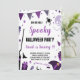 Jetez une fête chic et éffrayante avec cette invitation d'anniversaire d'Halloween violet! Conçu pour les filles qui aiment Halloween et tout ce qui est mignon et déplaisant, cette carte modifiable combine le charme avec une touche de frayeur. Parfait pour les anniversaires d'octobre, les soirées costumées, ou un amusant bash d'Halloween !