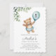 Ours vert Invitation d'anniversaire, premier anniversaire Teddy, Invitation minimaliste