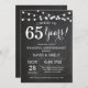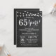 Invitation d'anniversaire de mariage 65 ans. Fond de tableau noir. Guirlande lumineuse. Noir et blanc. 1re, 2e, 3e, 4e, 5e, 10e, 15e, 20e, 25e, 30e, 35e, 40e, 45e, 50e, 55e, 60e, 65e, 70e, 75e, 80e, Toutes années. Anniversaire adulte. Fête d'anniversaire pour homme ou femme. Pour une personnalisation supplémentaire, veuillez cliquer sur le bouton "Personnaliser" et utiliser notre outil de conception pour modifier ce modèle.