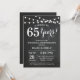 Invitation d'anniversaire de mariage 65 ans. Fond de tableau noir. Lumières guinguettes. Noir et blanc. 1re, 2e, 3e, 4e, 5e, 10e, 15e, 20e, 25e, 30e, 35e, 40e, 45e, 50e, 55e, 60e, 65e, 70e, 75e, 80e, Toutes années. Anniversaire adulte. Fête d'anniversaire pour homme ou femme. Pour une personnalisation supplémentaire, veuillez cliquer sur le bouton "Personnaliser" et utiliser notre outil de conception pour modifier ce modèle.